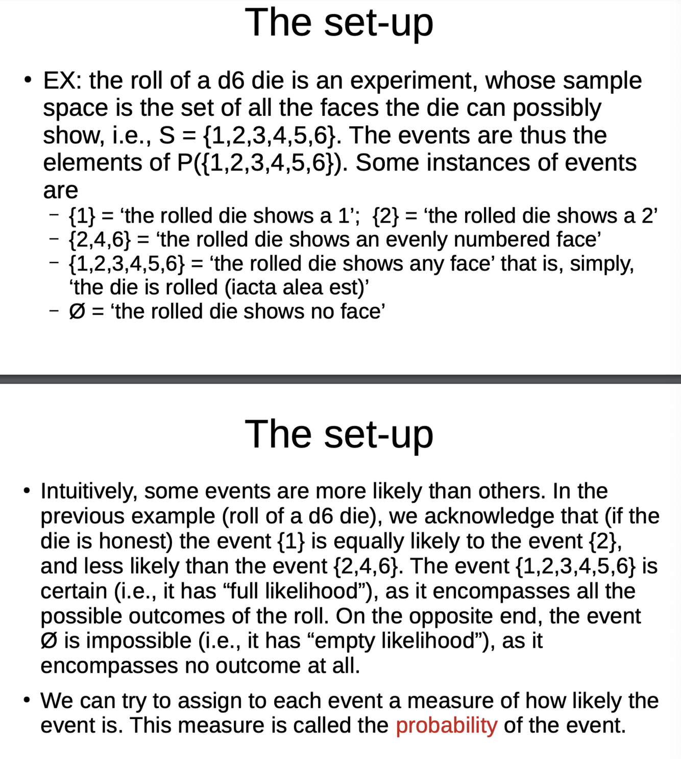 What is the set-up for probability?