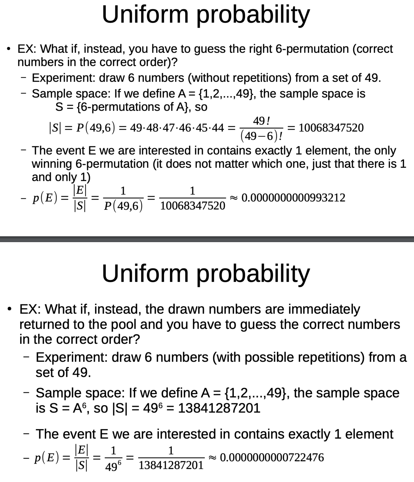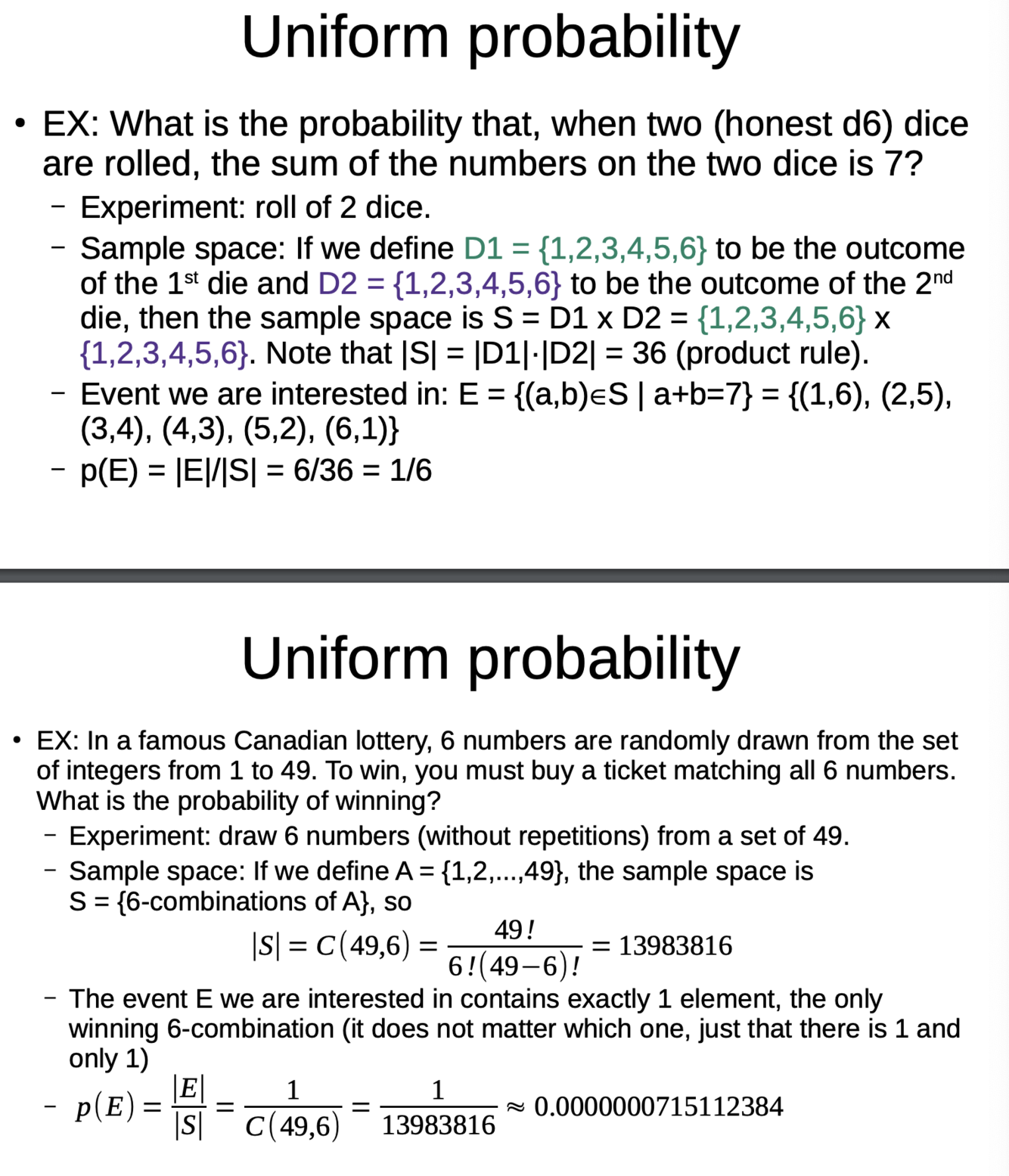 More examples of uniform probability
