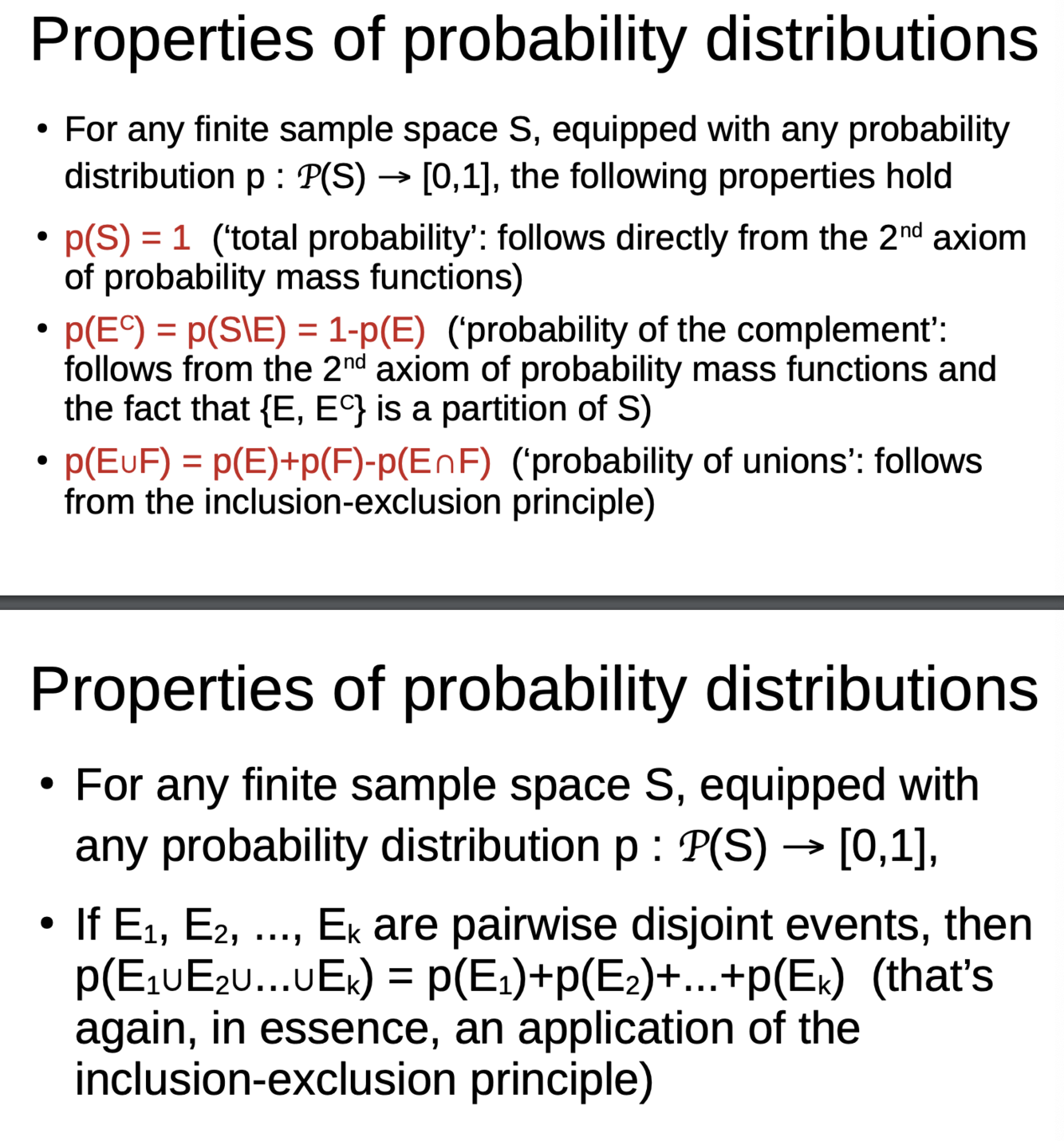 What are the properties of probability distributions?