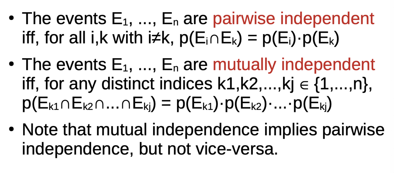 What are pairwise and mutually independent events?