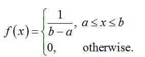 Give an expression for a uniform probability distribution f(x), observing the curve where it has a value only on the range of a <= x <= b.