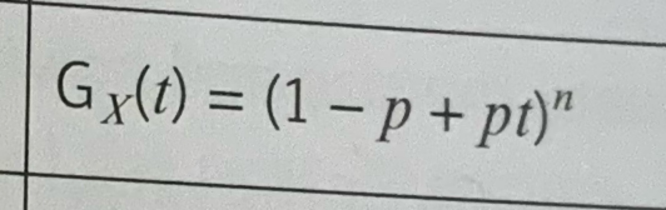 Probability generating function for binomial distribution, X~B(n,p)