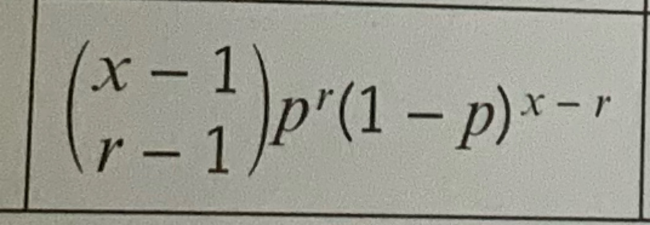 Negative binomial formula, X~Negative B(r,p)