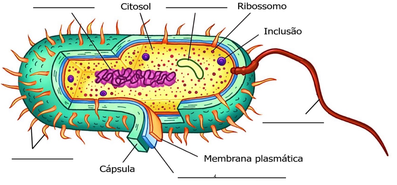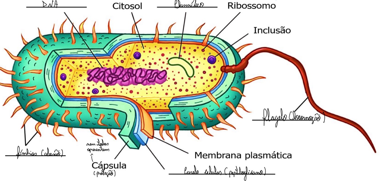 De o nome das estruturas da bactéria da imagem abaixo.
