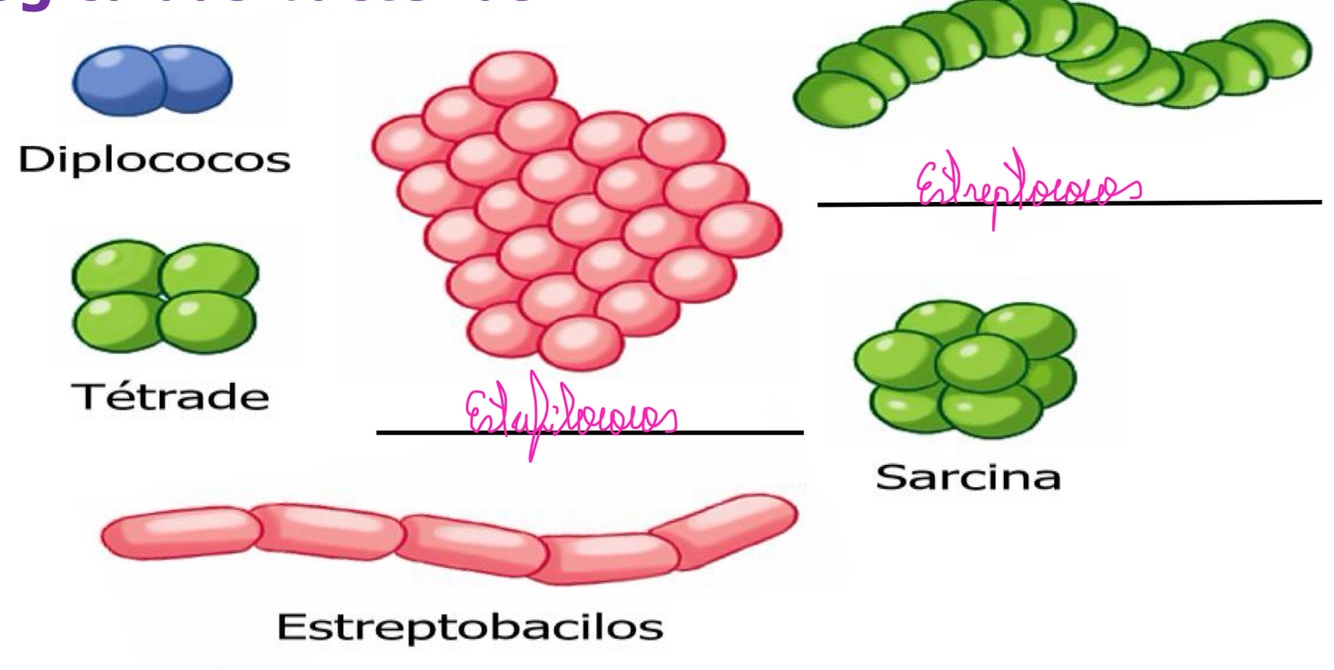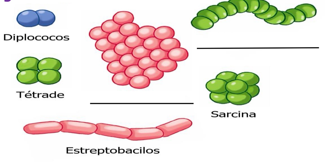 De o nome dos tipos morfológicos das bactérias na imagem abaixo.