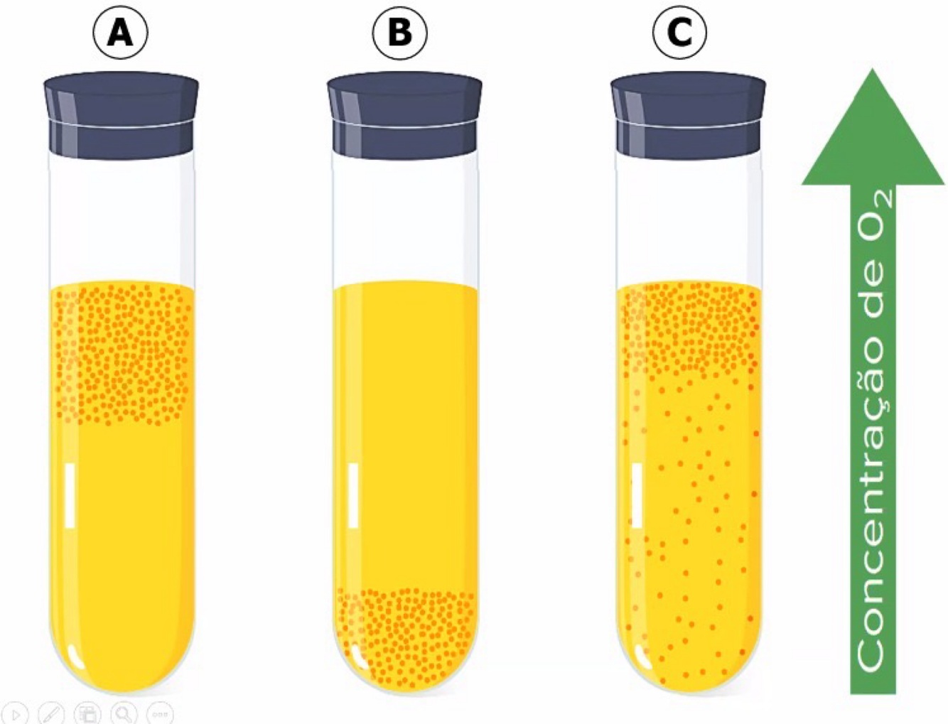 Caracterize as bactérias dos tubos da imagem abaixo como aeróbicas obrigatórias, anaeróbicas obrigatórias ou anaeróbicas facultativas.