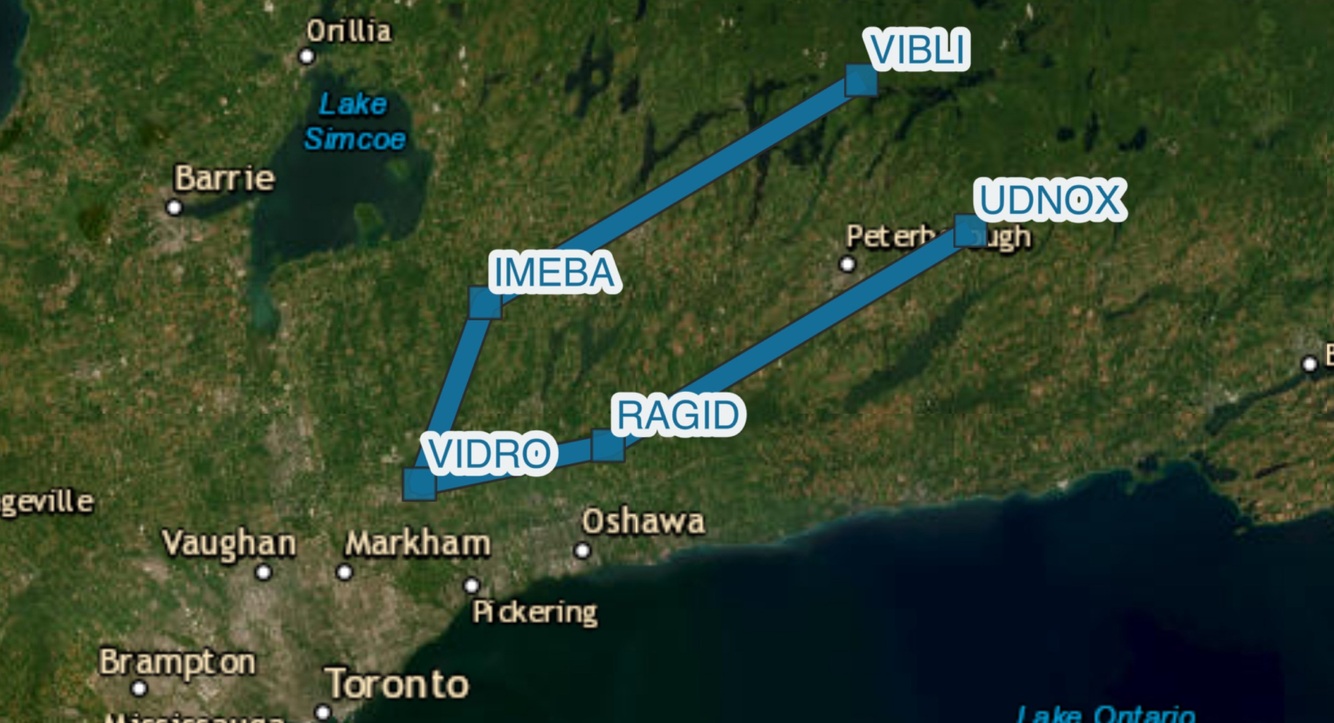 2) Upon completion of handoff and communication transfer, Toronto arrivals are Picton’s control in Killaloe’s airspace for descent and turns to the south.