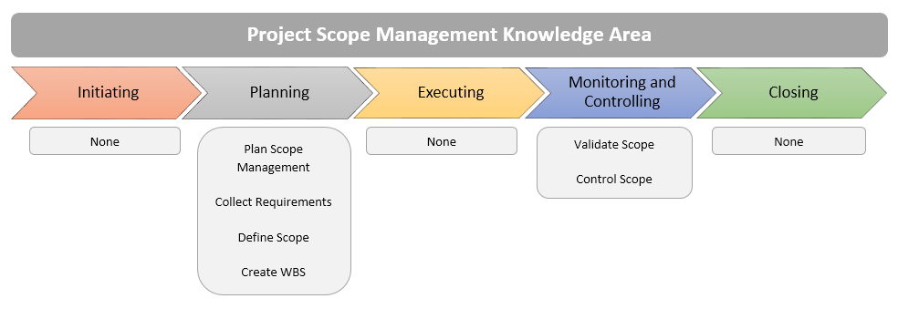 Identify the six processes in the Project Scope Management knowledge area.