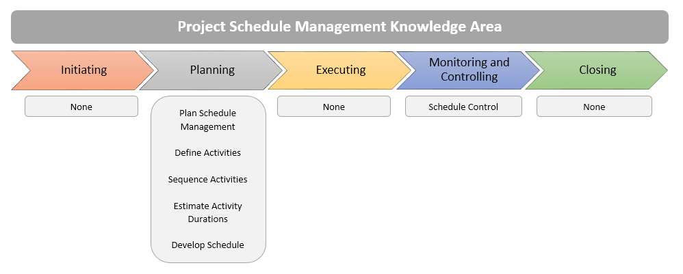 Identify the six processes in the Project Schedule Management knowledge area.