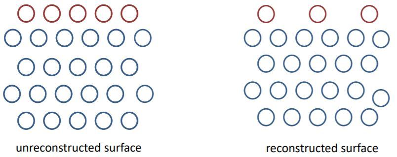 Reconstruction is more likely to occur for high surface energy arrangements of atom: (110) > (100) > (111).