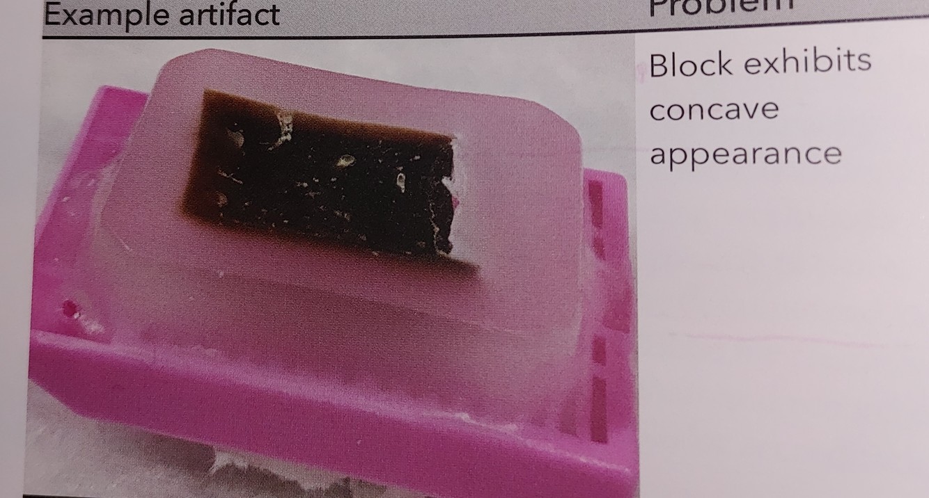 If you encounter a block where the tissue apears concave, what are the casue(s) and corrective action(s)?