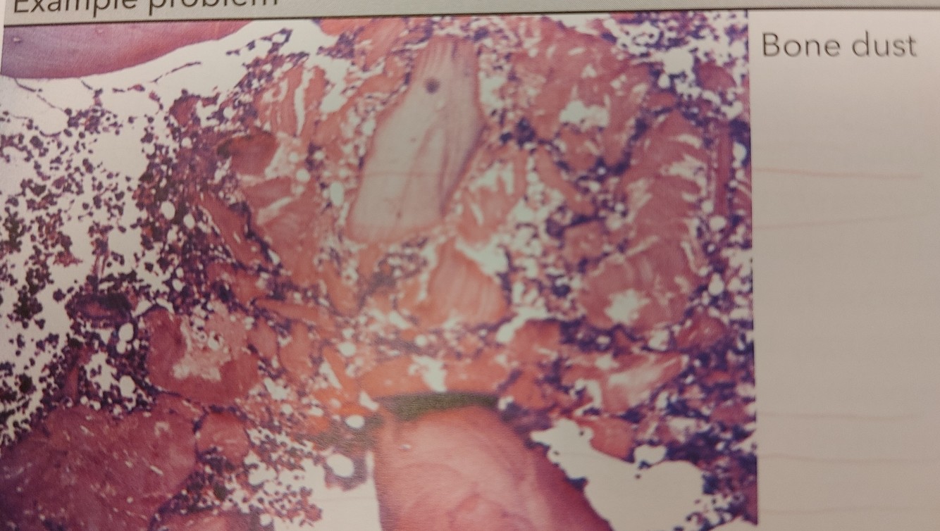 Cause: Bone dust pressed into the surfaces during gross sectioning