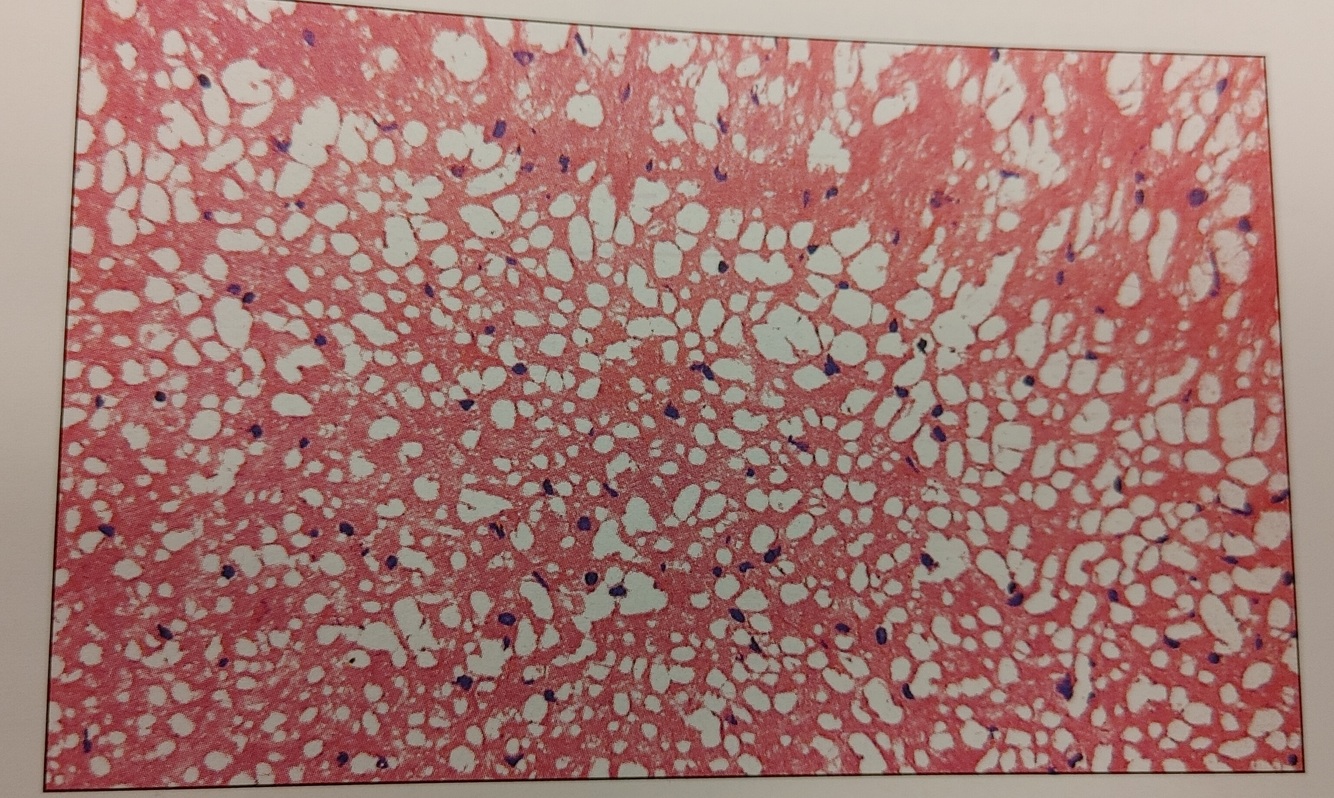 Image is an example of ice crystal artifact in a frozen section. Irregularly spaced holes. Source tissue given was brain.