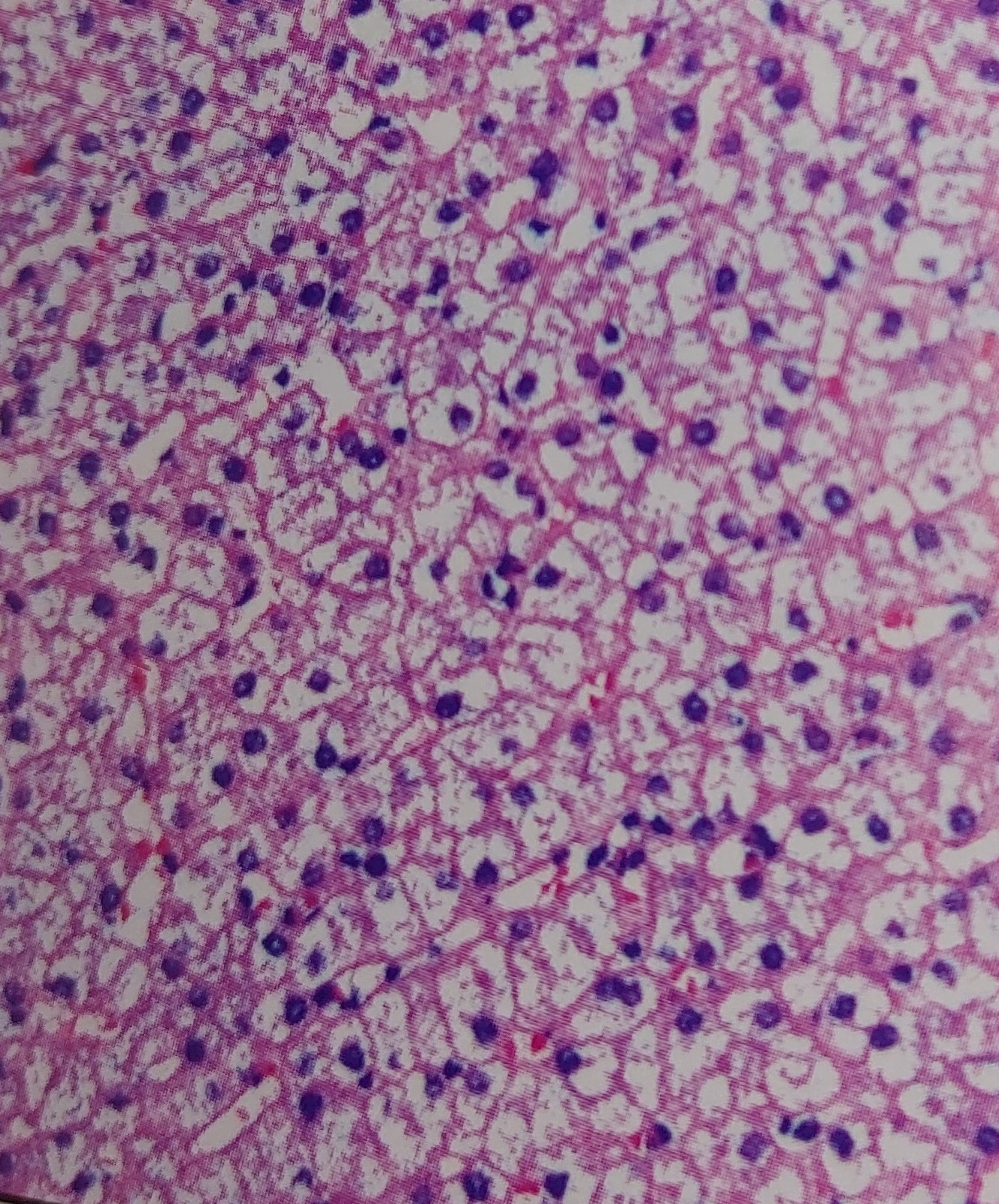 Image is an example of cell shrinkage artifact in a routine section. Regularly spaced holes.