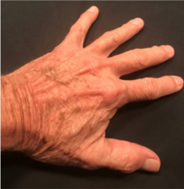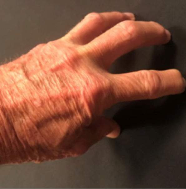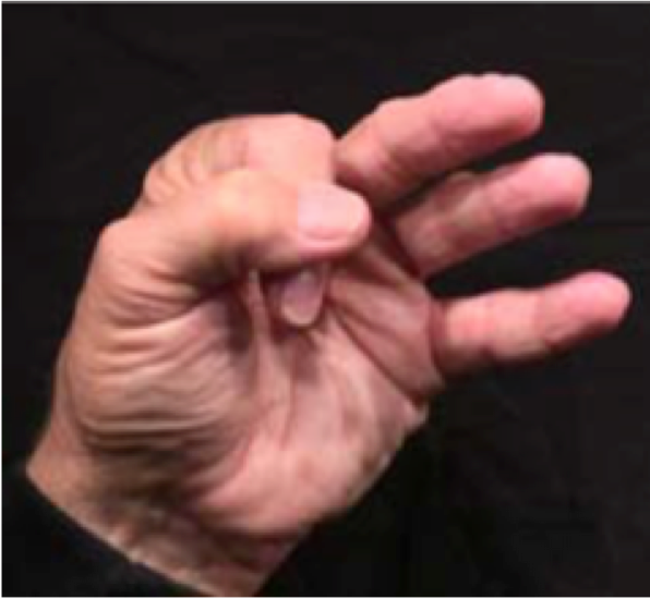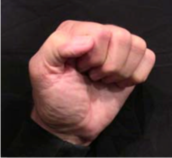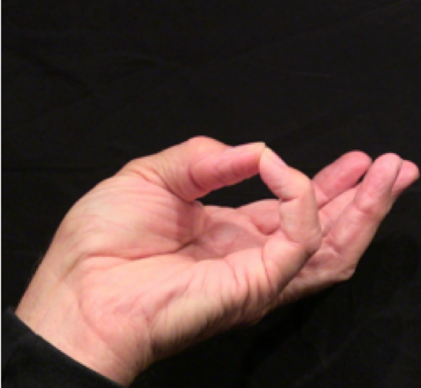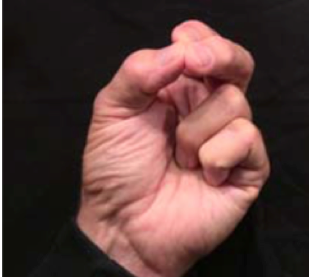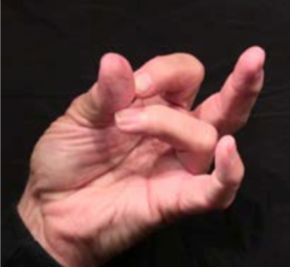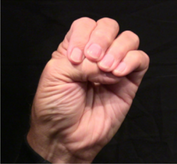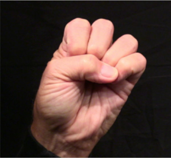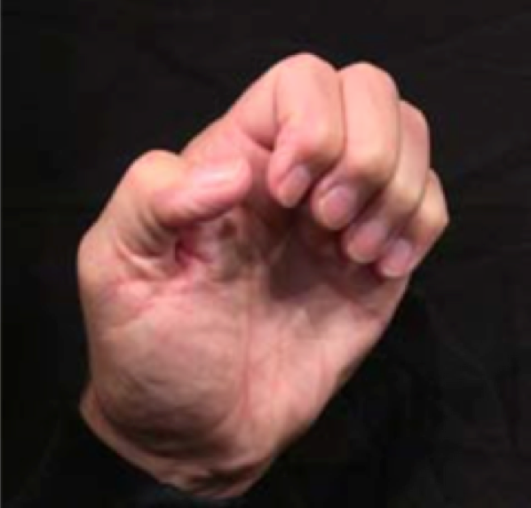 Position: Partially flexed four fingers with finger tips into the palm of the hand. The thumb nail touch’s the radial side of the index finger PIP.