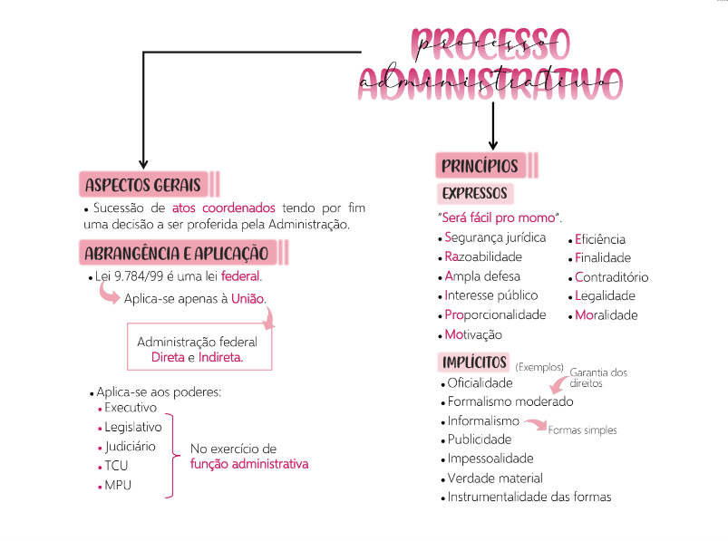 O processo administrativo disciplinado pela Lei federal nº 9.784/1999 é regido por princípios e norteado por critérios, constantes expressa ou implicitamente do texto legal, sobre eles\;