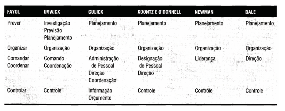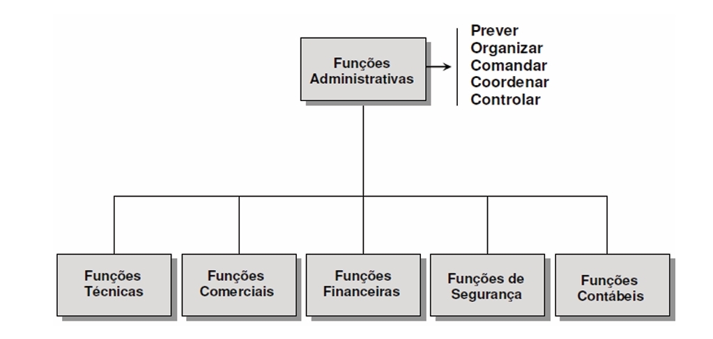 Fayol — funções administrativas: Previsão, Organização, Comando, Coordenação e