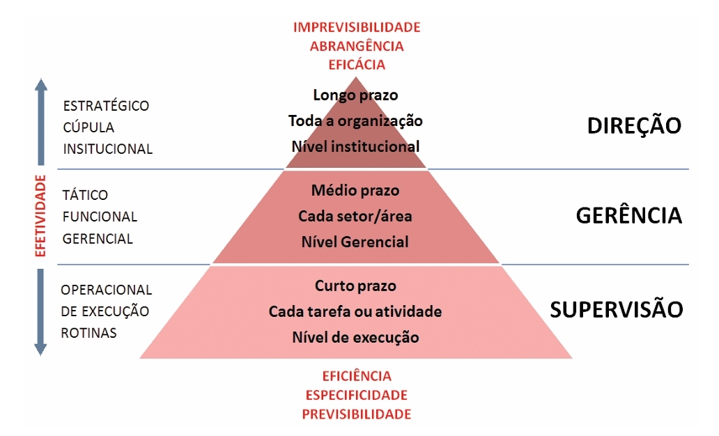 Em todos os níveis hierárquicos, observa-se o PODC.