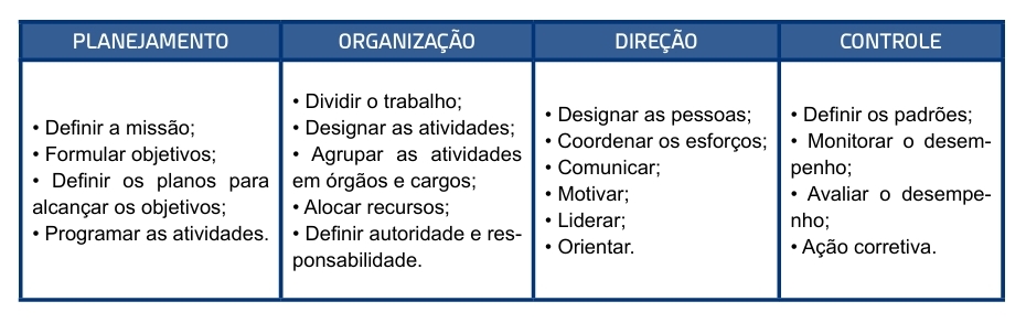 Obs.: as funções mais cobradas são as de Fayol e as de Dale (ou Drucker).
