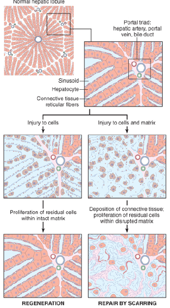 Nesse caso, as células que sofreram necrose durante a resposta inflamatória são substituídas por células iguais, do mesmo tecido (não há perda de capacidade funcional)