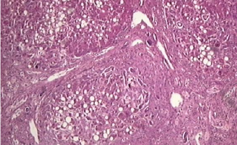 Sim, note a desorganização do parênquima hepático, perda da arquitetura do órgão, formação de nódulos rodeados por fibrose.