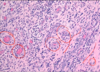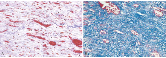 Aqui, houve deposição do tecido conjuntivo frouxo no tecido lesado, mas ainda não foi depositado o tecido fibrótico.