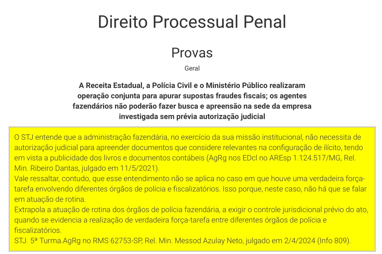✅ STJ. 6ª Turma. REsp 1.954.842-RJ, Rel. Min. Rogerio Schietti Cruz, julgado em 14/5/2024 (Info 814).