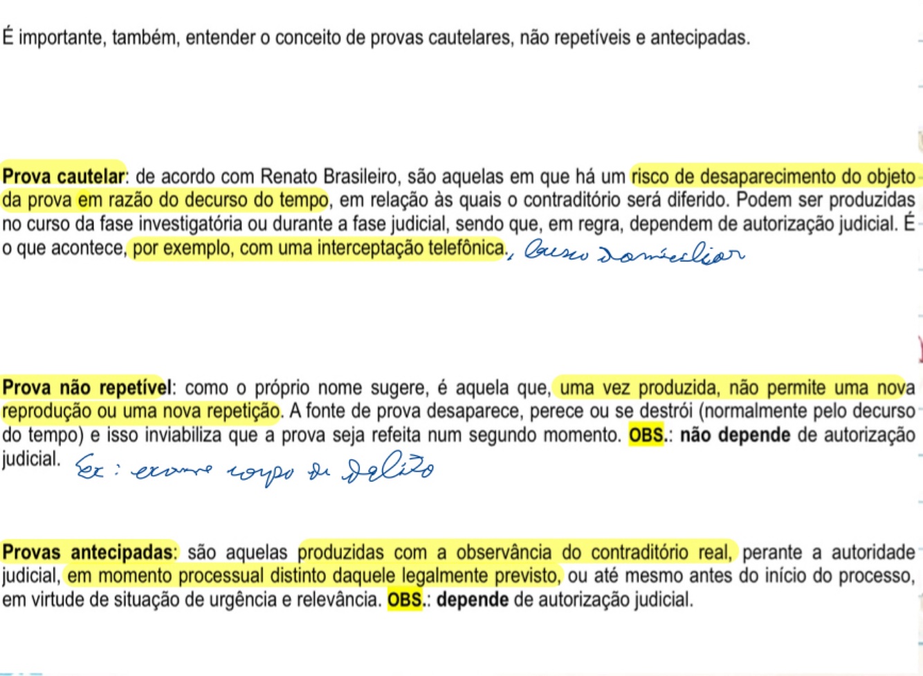 Cite e conceitue as provas que uma vez produzidas não podem mais ser coletadas: