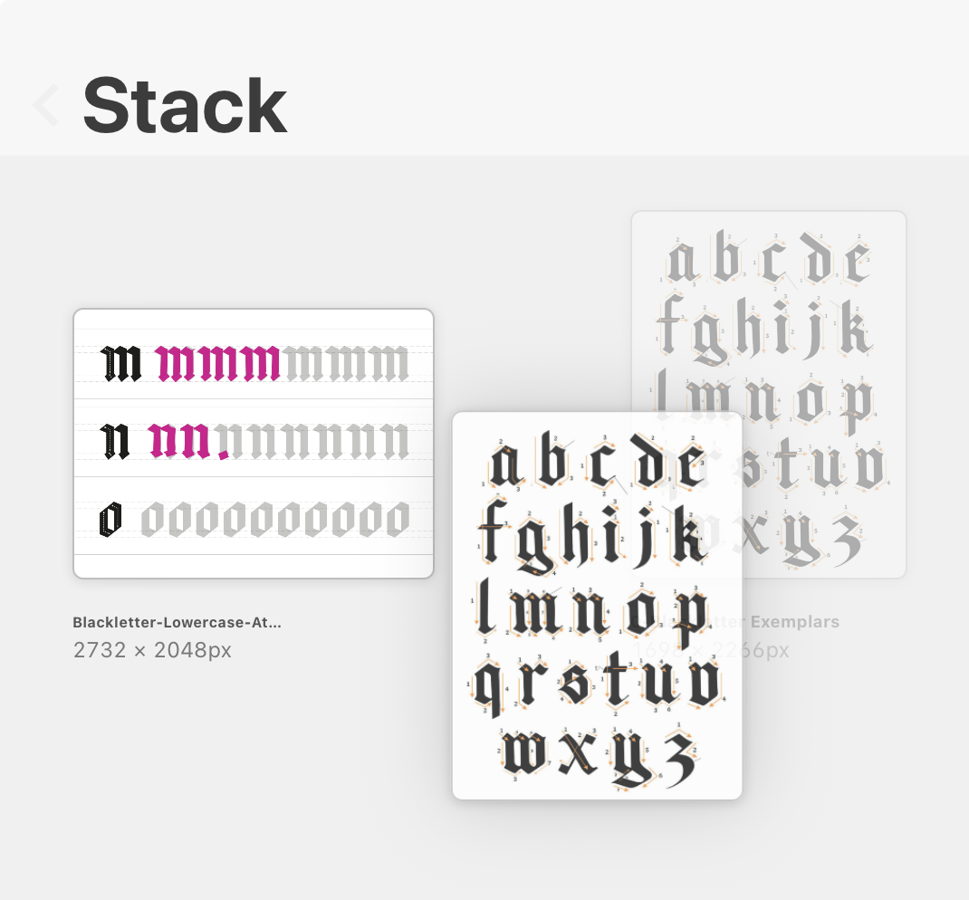 A Stack is a group of canvasses within the Gallery. In the Gallery, a Stack looks like an untidy stack of papers. When you open a Stack, the Stack’s name, or the word ‘Stack” if not renamed, appears at the top left-hand corner of the screen.