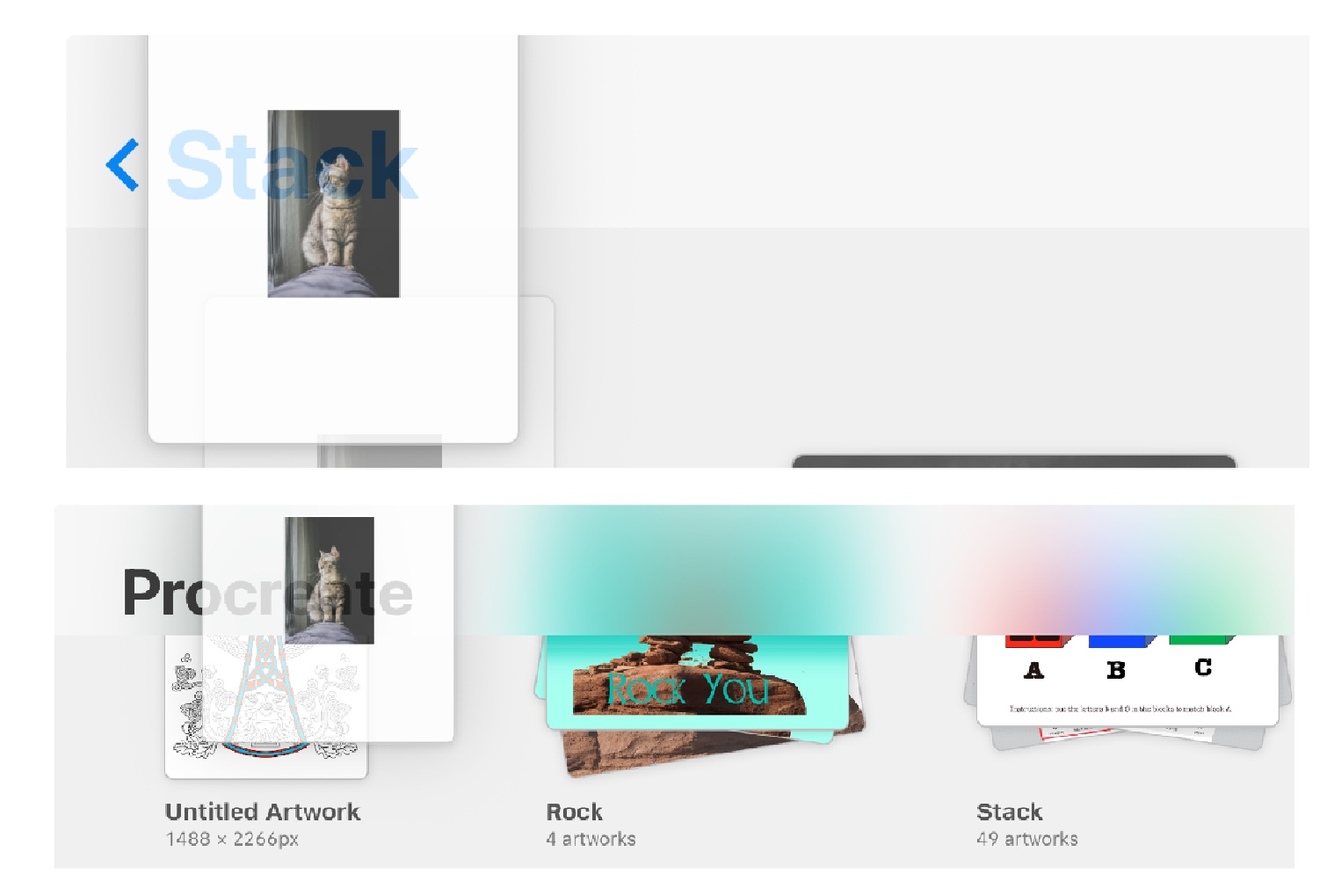 Tap and hold on a canvas thumbnail in the Gallery or in an opened Stack. The canvas will pop up and then can be dragged around the Stack or Gallery.