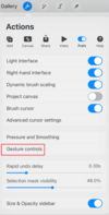 b) You can swipe left or right on the screen to see previews of every canvas, whether in the Gallery or a Stack in the Gallery. You can also tap once on a preview to invoke the navigation arrows and then use the arrows on the left and right sides of the screen.