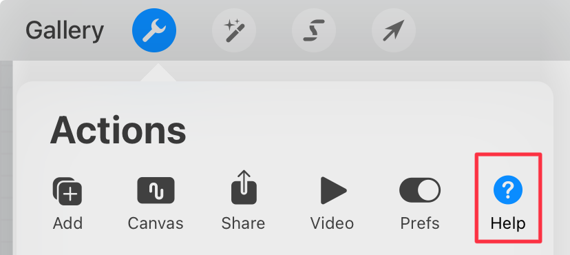 Open a canvas. Tap on the Wrench Icon (Actions) and then tap on the Help button.