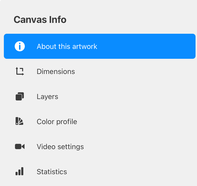 What canvas information can be found in Actions - Canvas - Canvas Info?