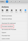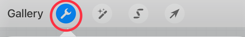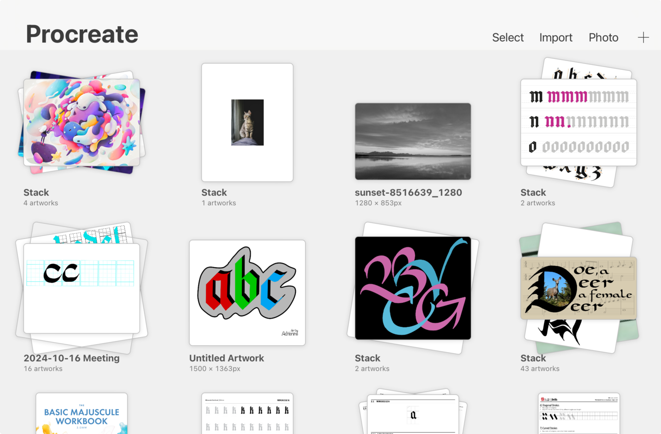 The Gallery is the Procreate home screen. You are automatically in the Gallery when you open Procreate. From the Gallery, you can see your canvases and Stacks. The word “Procreate” appears at the top left-hand corner of the screen.