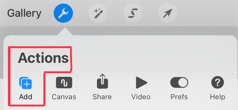 What can you do from the “Add” menu under Actions (Wrench Icon)?