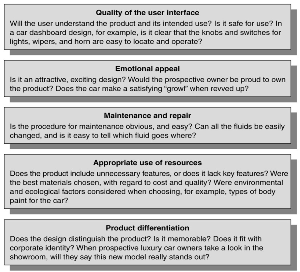 Assessment Factors for an Industrial Design