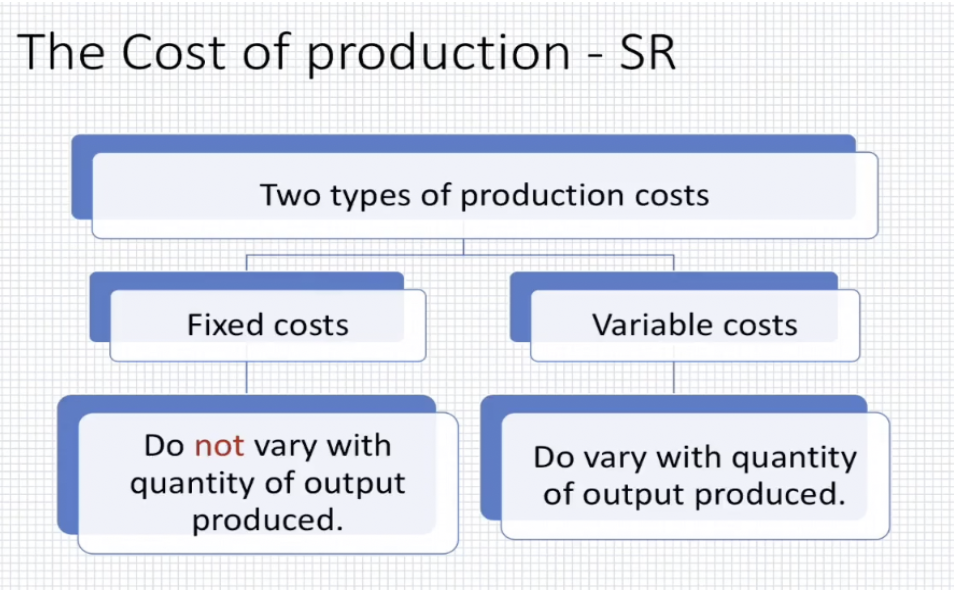 Fixed Factors of Production: Inputs that cannot be changed in the short term and stay the same regardless of how much output is produced