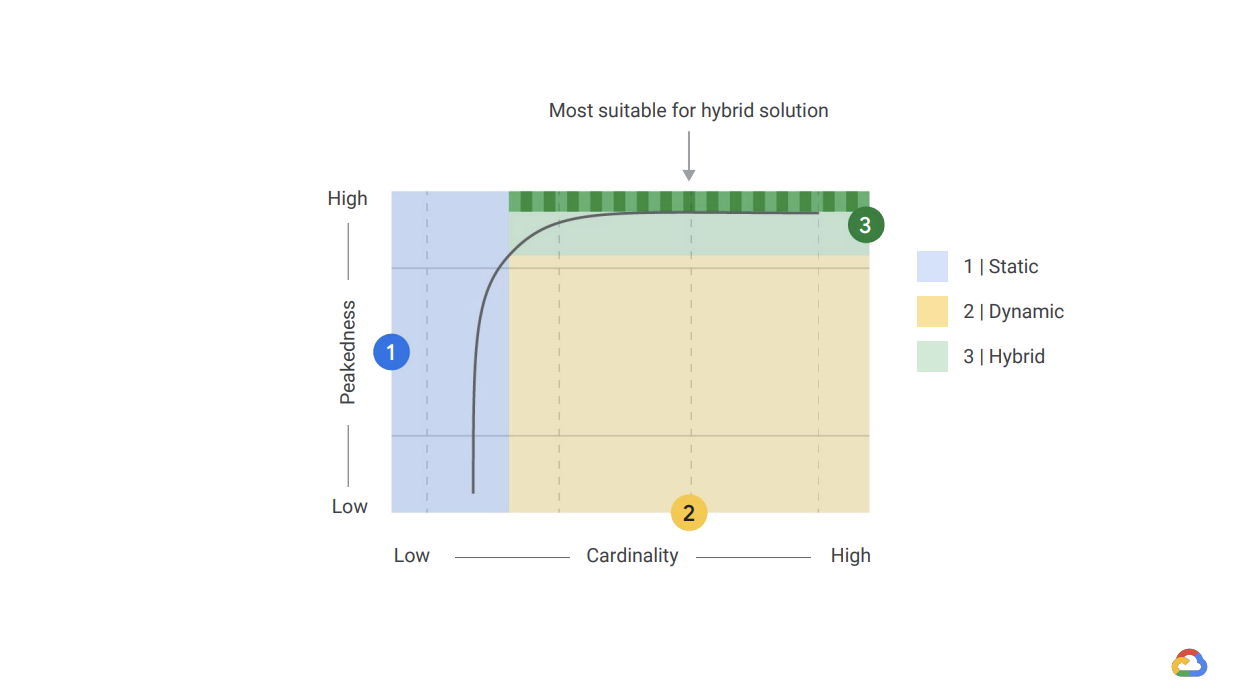 What is Peakedness and Cardianality and how it is realated to choosing between static and dynamic model serving?