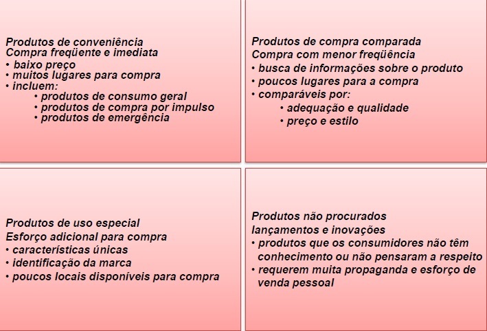 Classificação dos produtos de consumo: