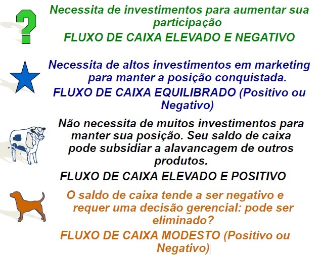 Cite as decisões relativas a cada posicionamento na matriz BCG: