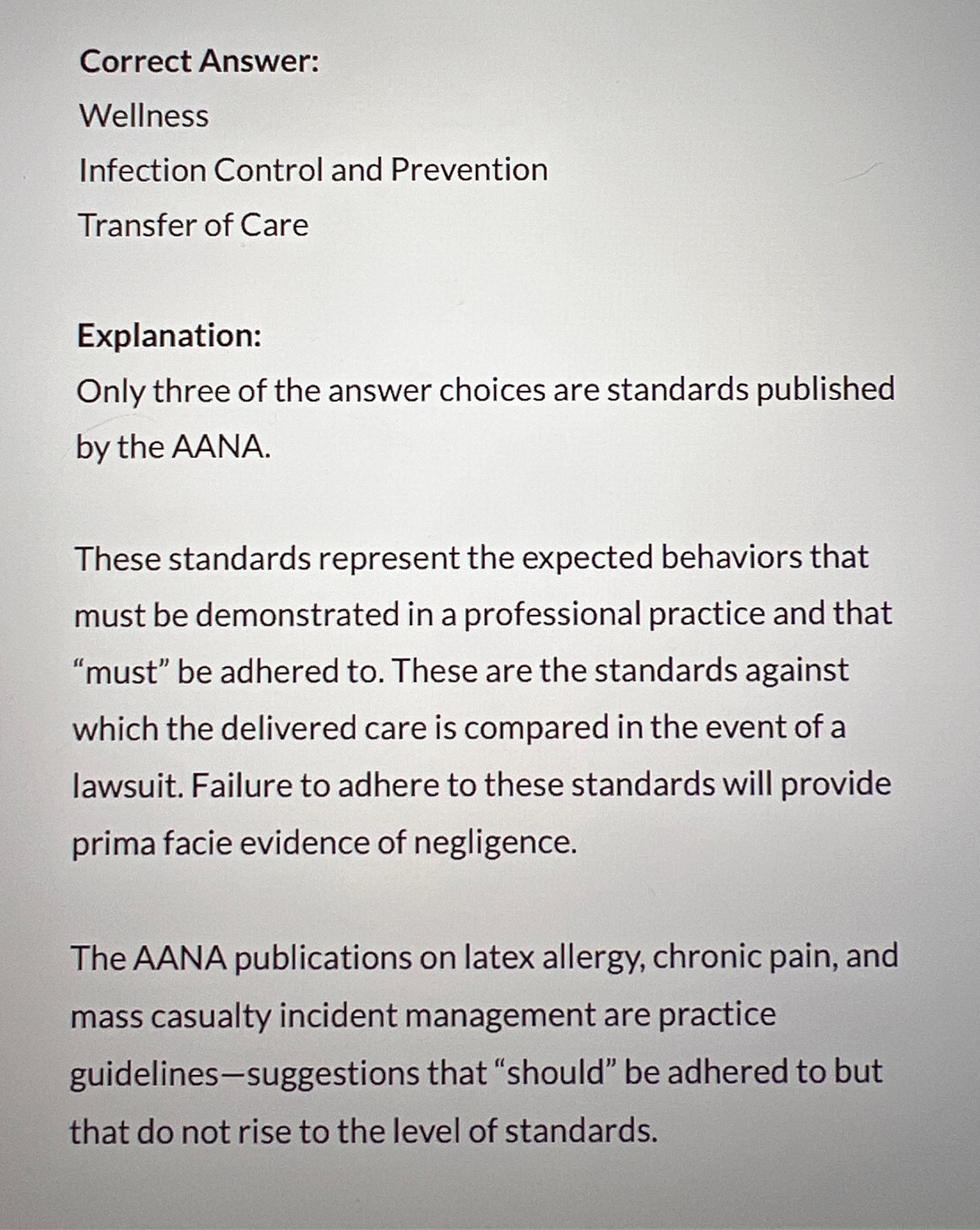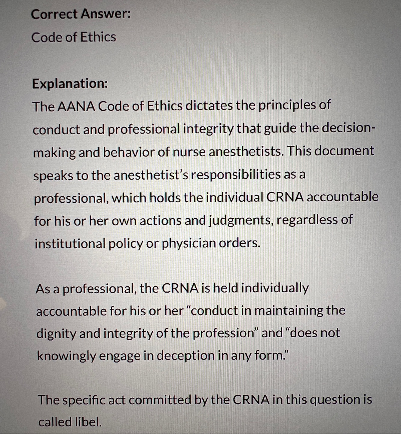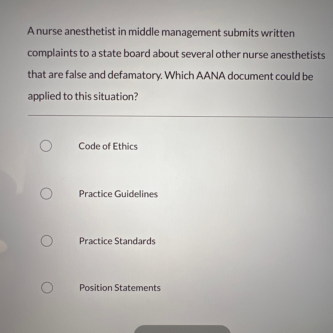 Authoritative statements that describe minimum rules and responsibilities for which anesthetists are held accountable