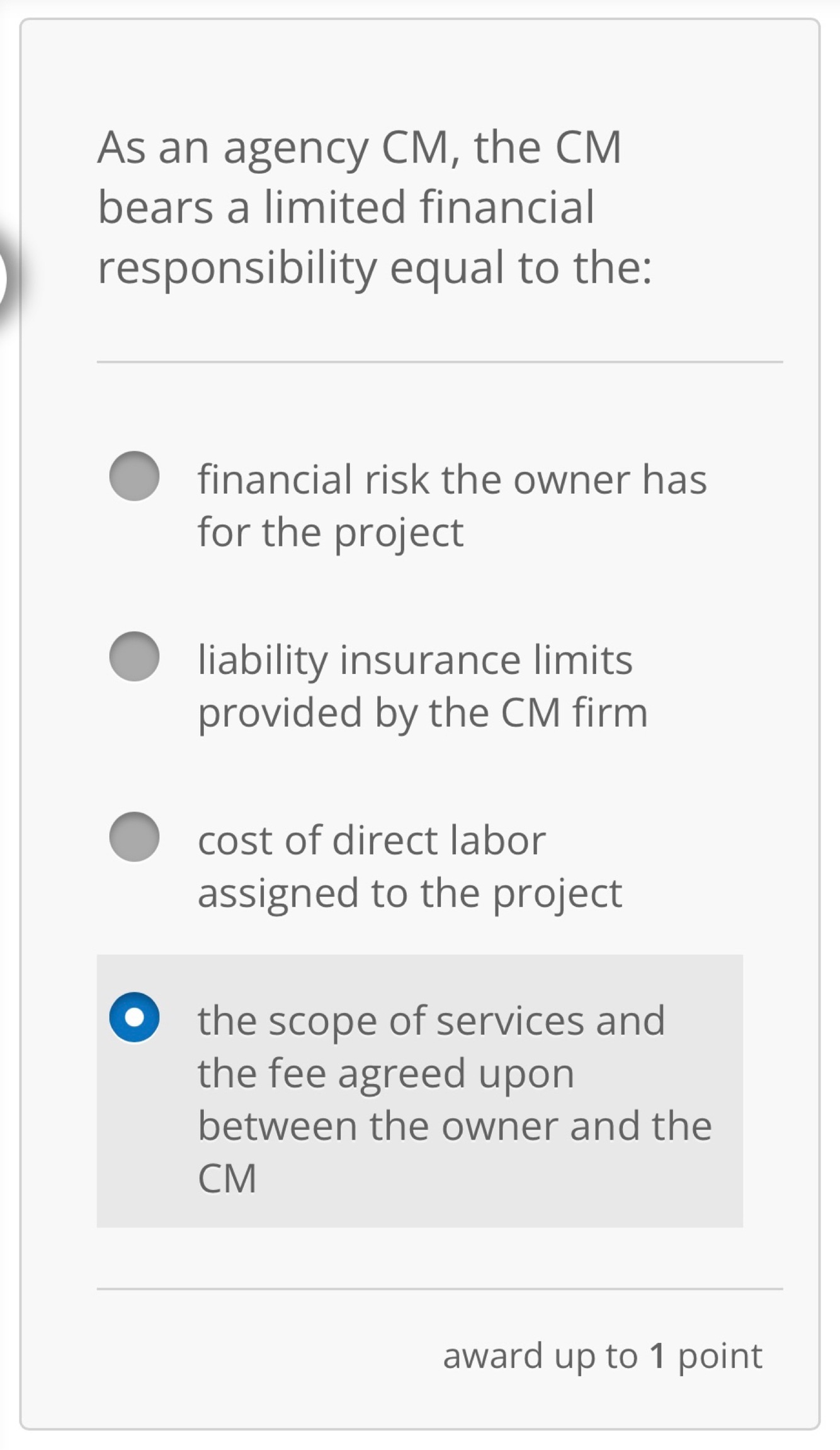 As an agency CM, the CM bears a limited financial responsibility equal to the:
