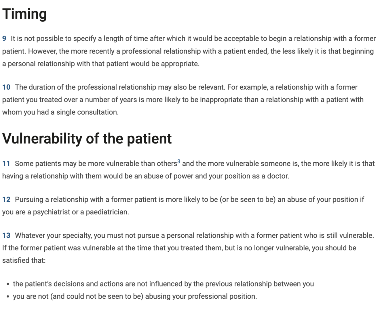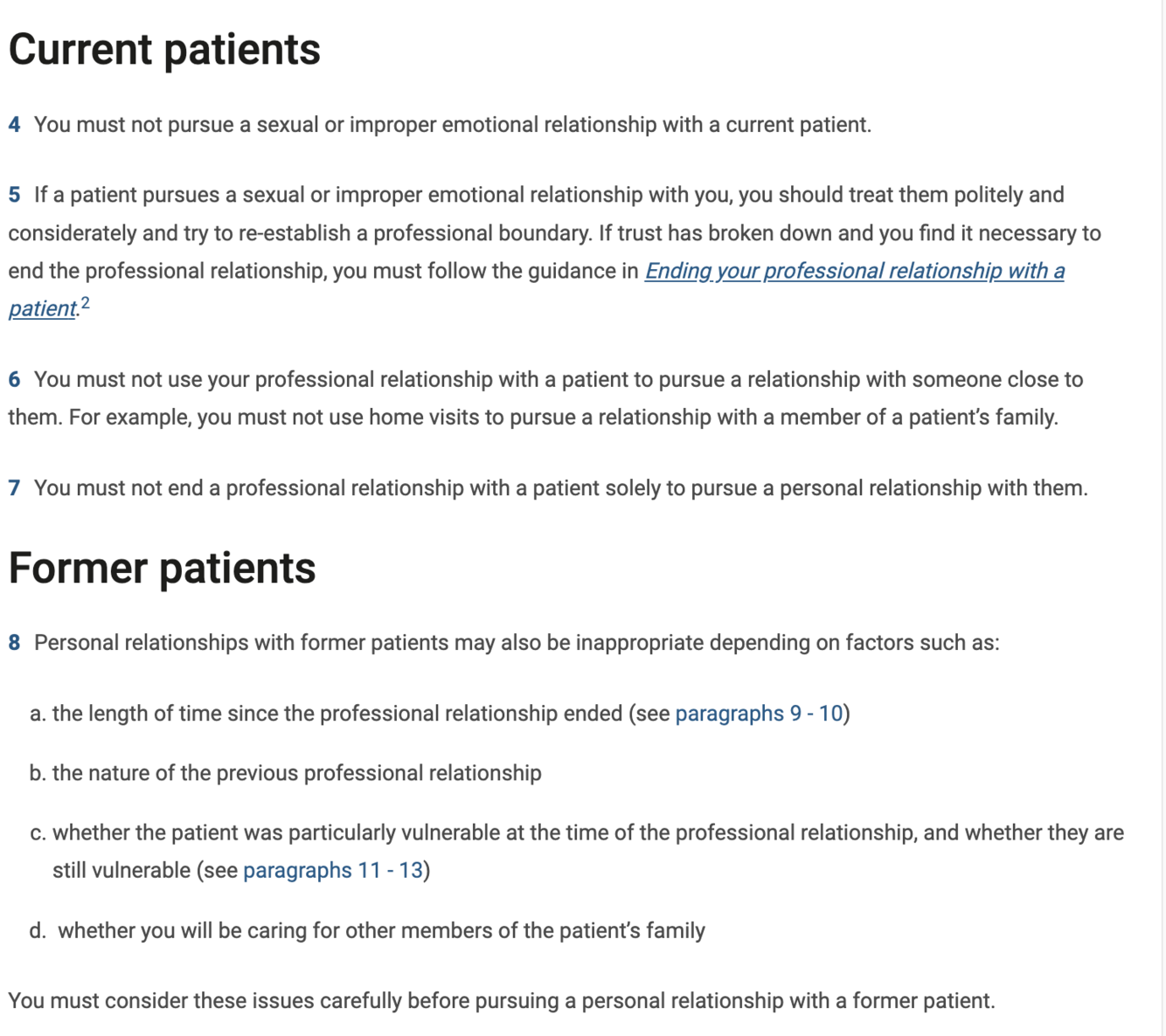 If you are not sure whether you are (or could be seen to be) abusing your professional position, you should seek advice about your situation from an impartial colleague, your defence body or your medical associatio