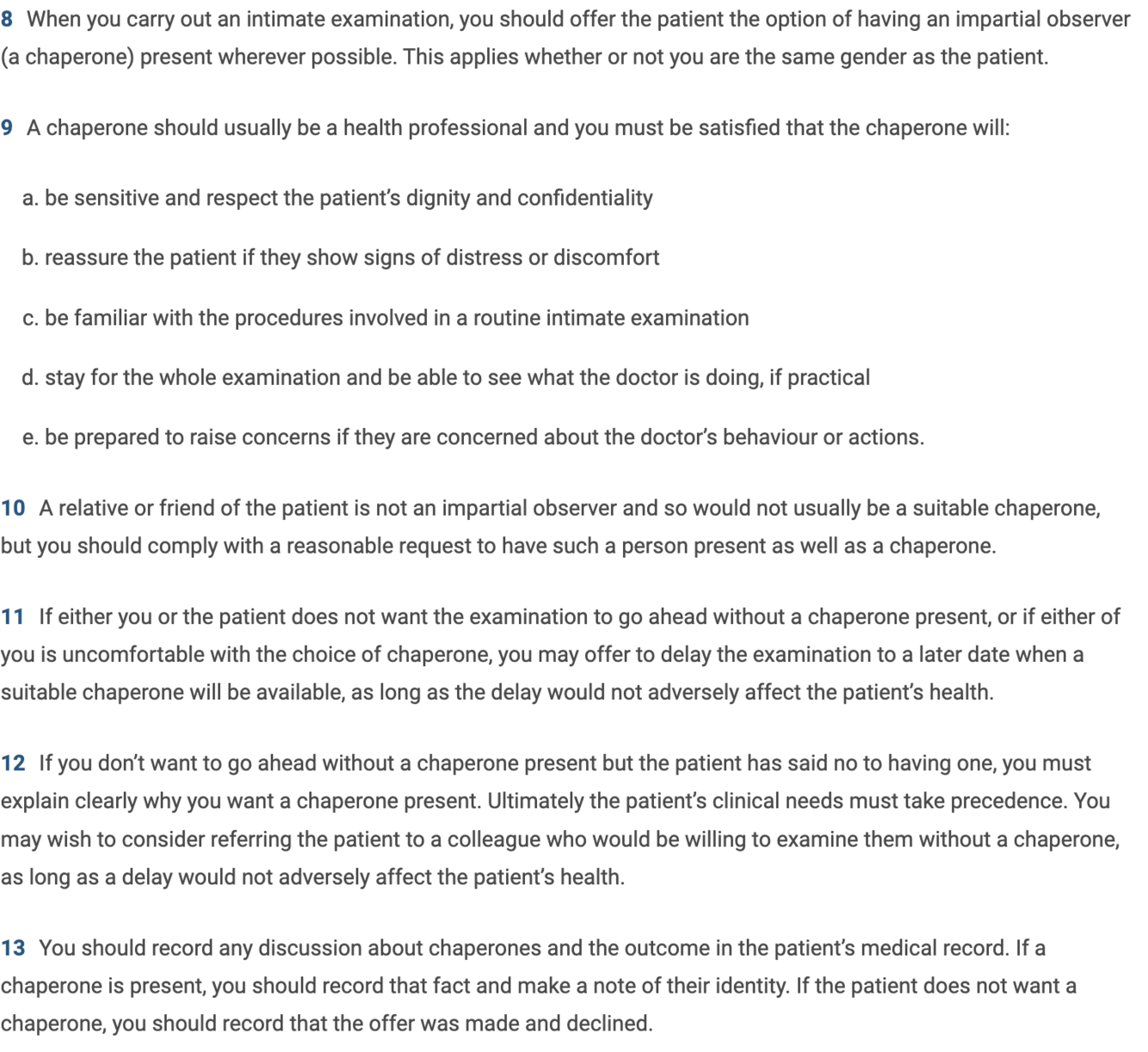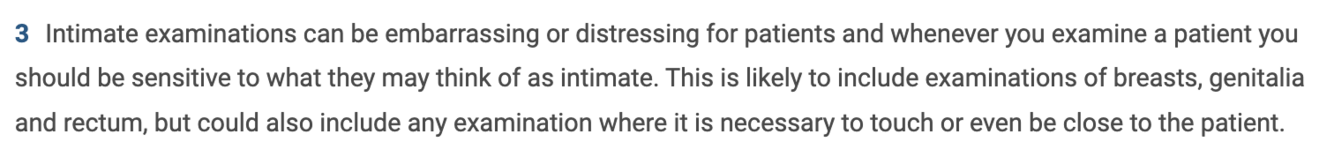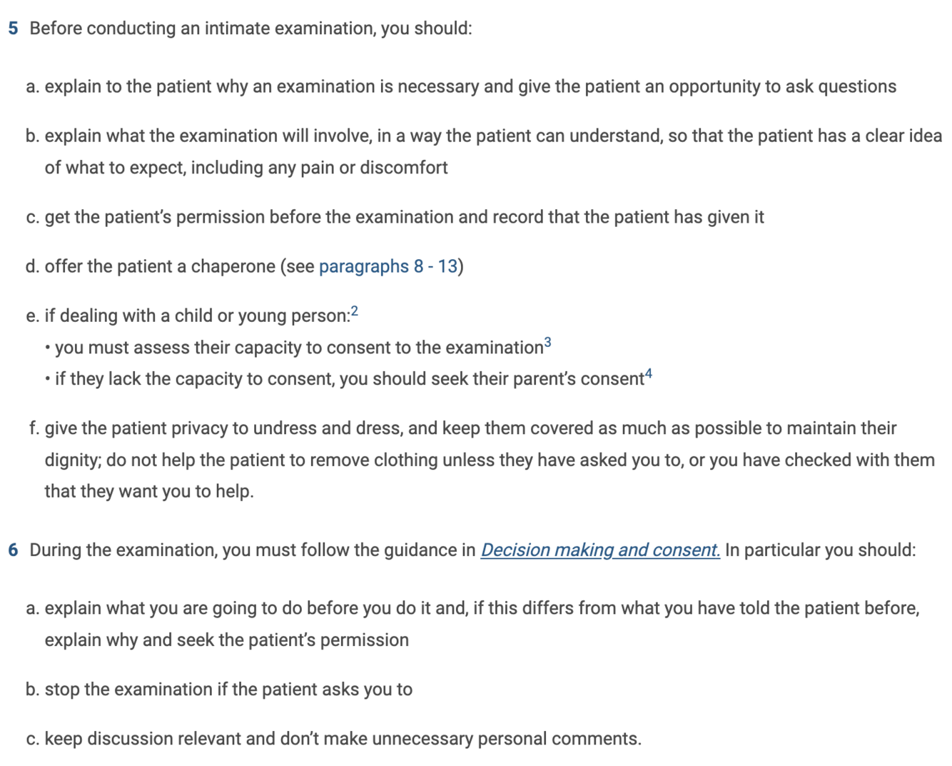 Before you carry out an intimate examination on an anaesthetised patient, or supervise a student who intends to carry one out, you must make sure that the patient has given consent in advance, usually in writing