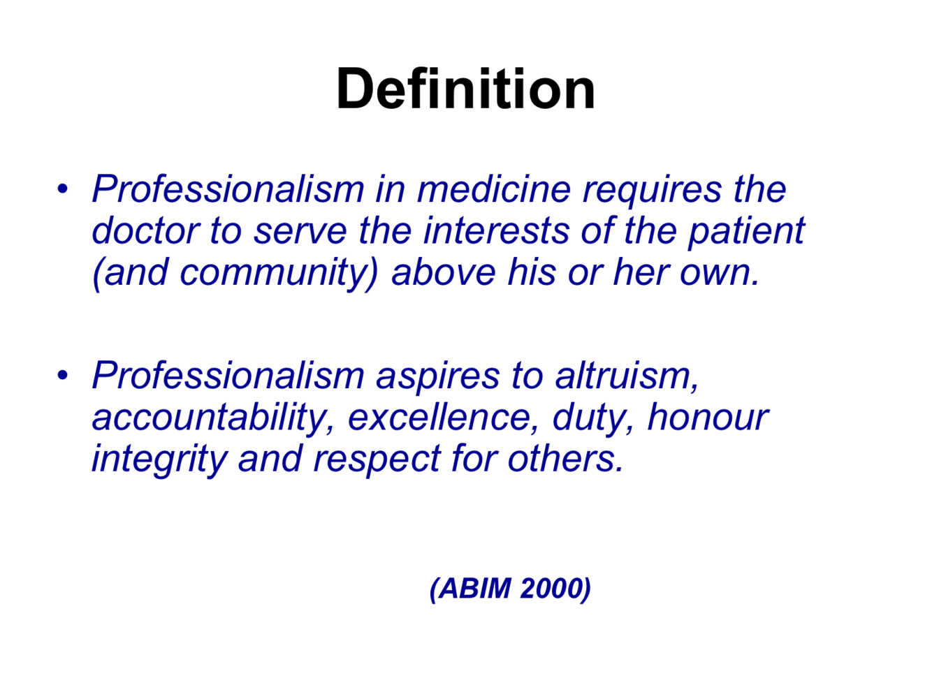 What are the are the definitive requirements of medical professionalism and what does it aim for?