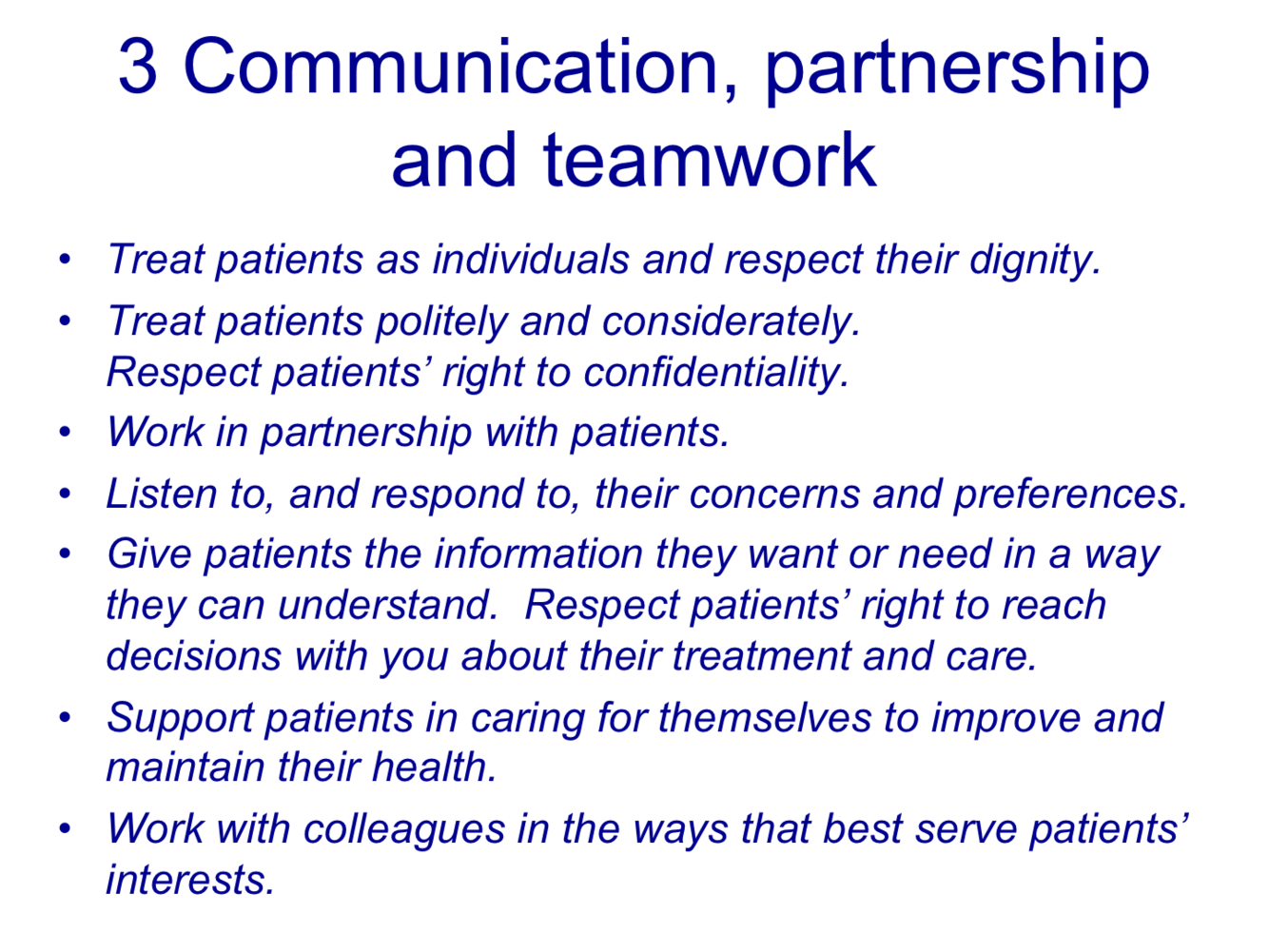 In the GMP guide, the 1st domain “Communication, partnership and teamwork” includes (12 items):