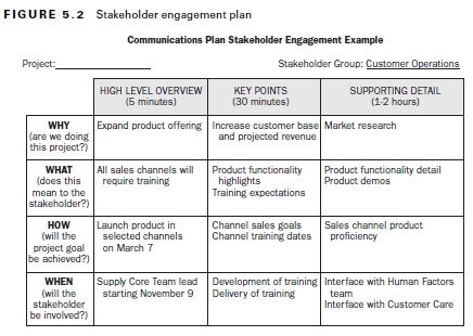 Figure 5.2 shows an example of a stakeholder engagement plan using the customer operations scenario for a new product deployment