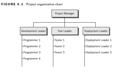members from a specifi c department such as sales, training, IT, or accounting. Figure 5.3 shows a sample project organization chart using the team lead concept