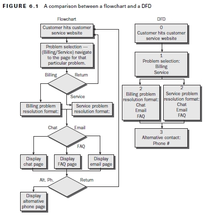 Figure 6.1 shows a sample fl owchart and DFD for the process of a customer interacting with a company through a customer service website