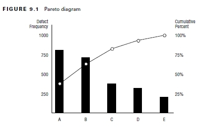 you can see that the most significant problems you want to focus on are A and B. Fixing these two items will resolve more than half the defects.